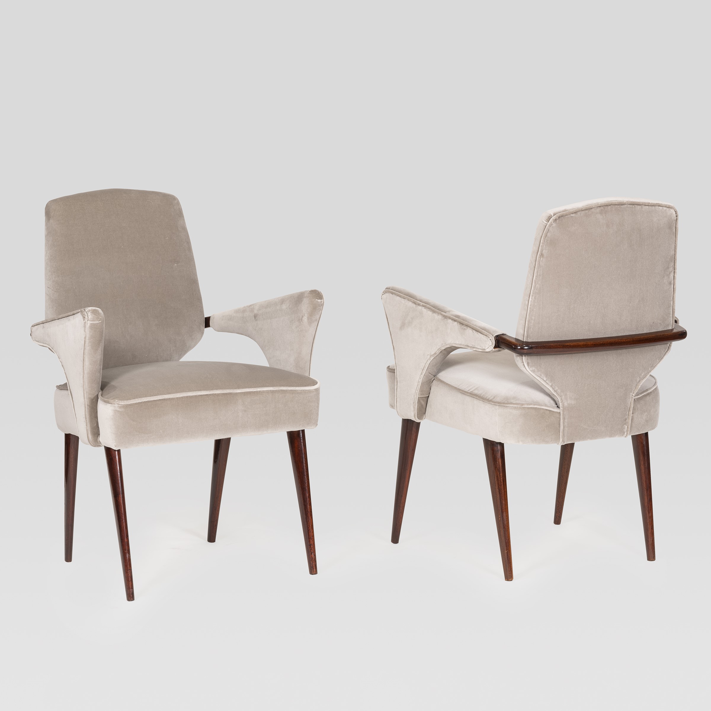 anni 50 coppia di poltroncine in legno e tessuto imbottito
