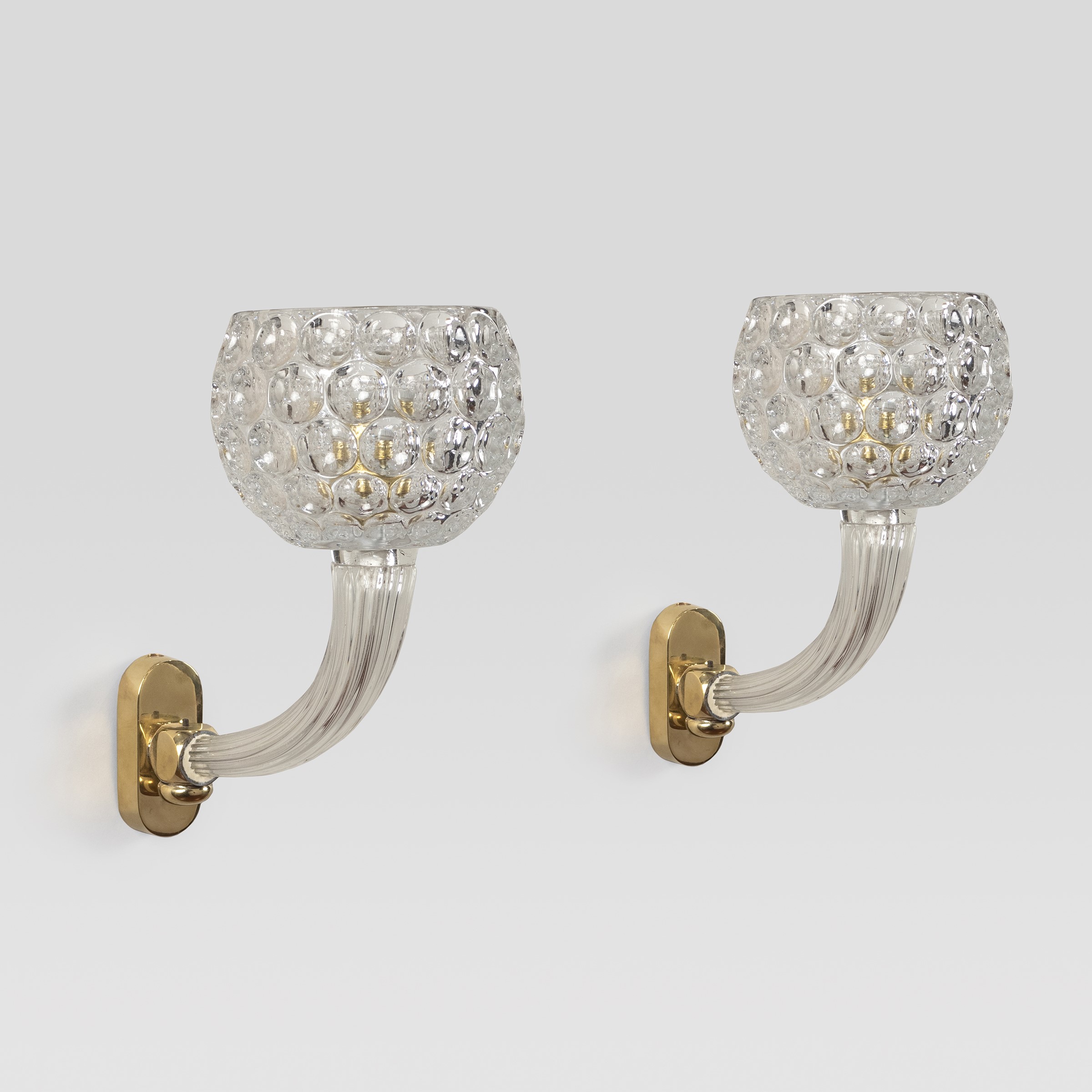 anni 60 -70 coppia di lampade da parete in vetro trasparente e ottone