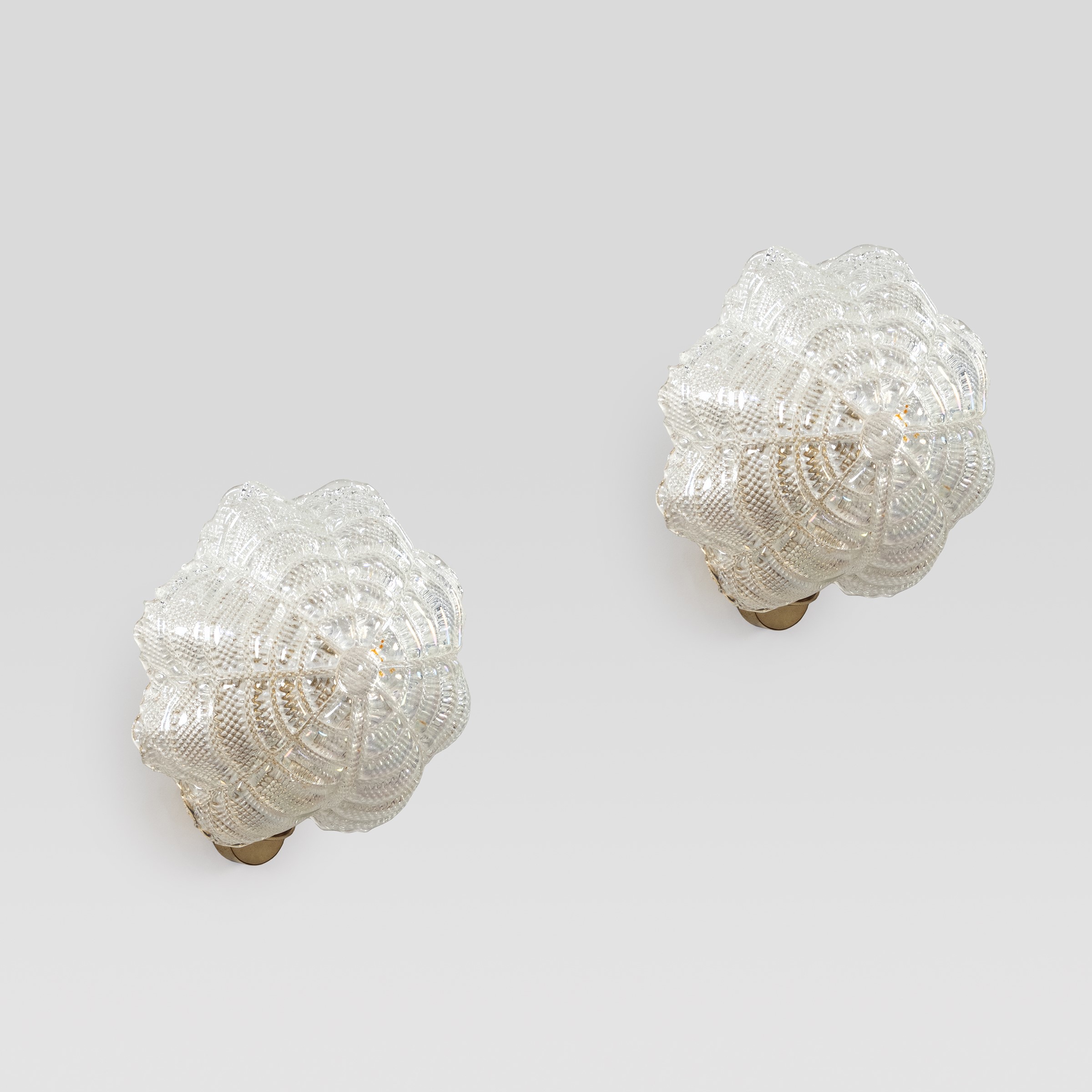 anni 60-70 coppia di lampade da parete in vetro martellato e ottone