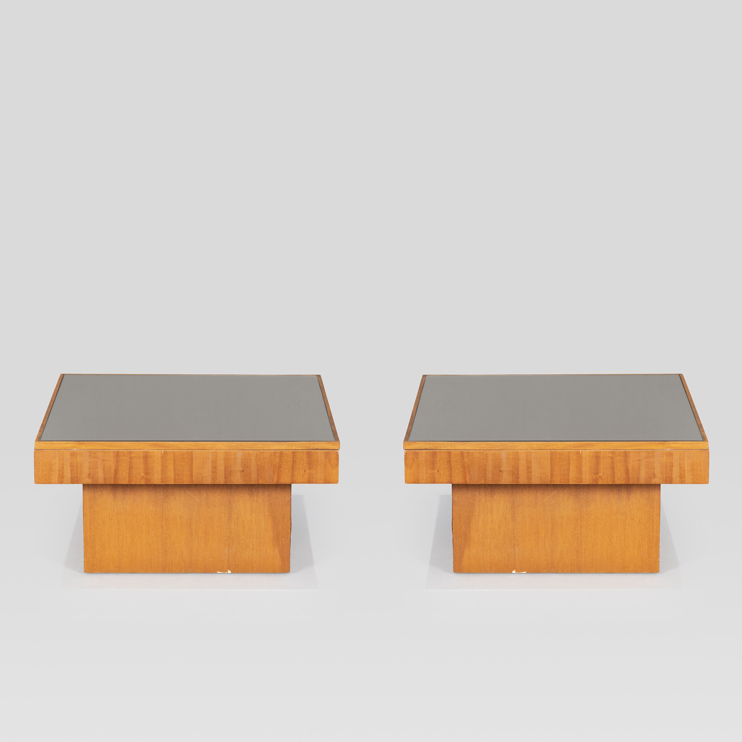 anni 80 coppia di tavolini apribili in legno e vetro specchiato, difetti e mancanze
