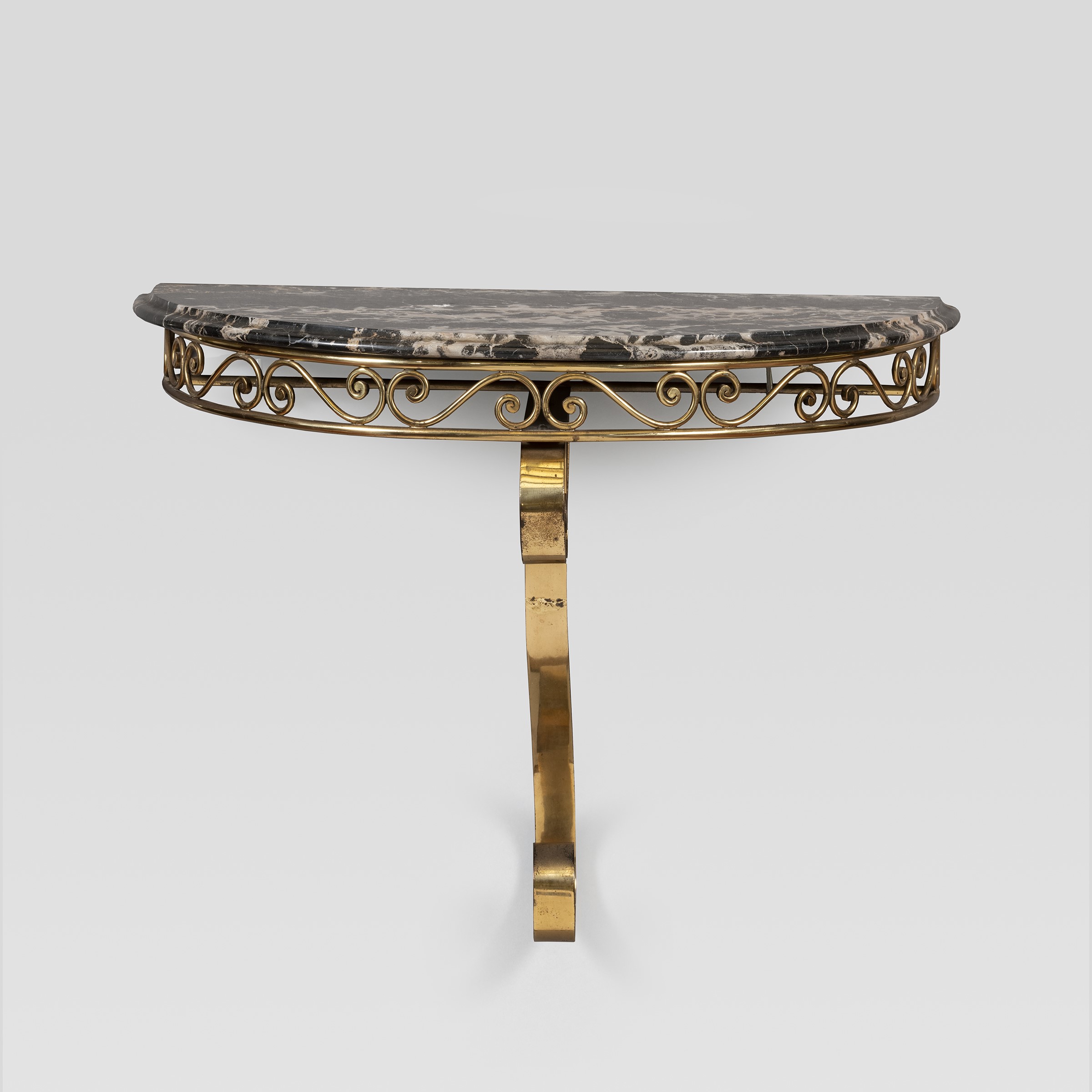 anni 60 coppia di consoles pensili in ottone e marmo