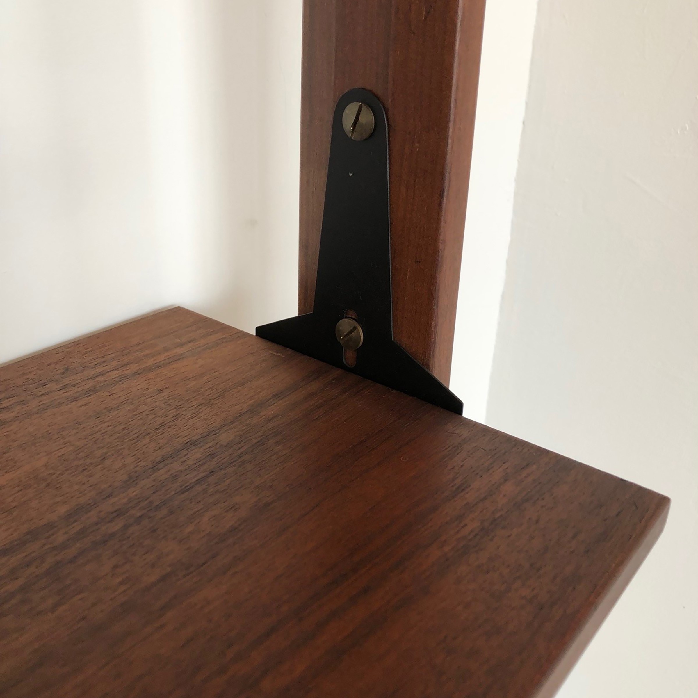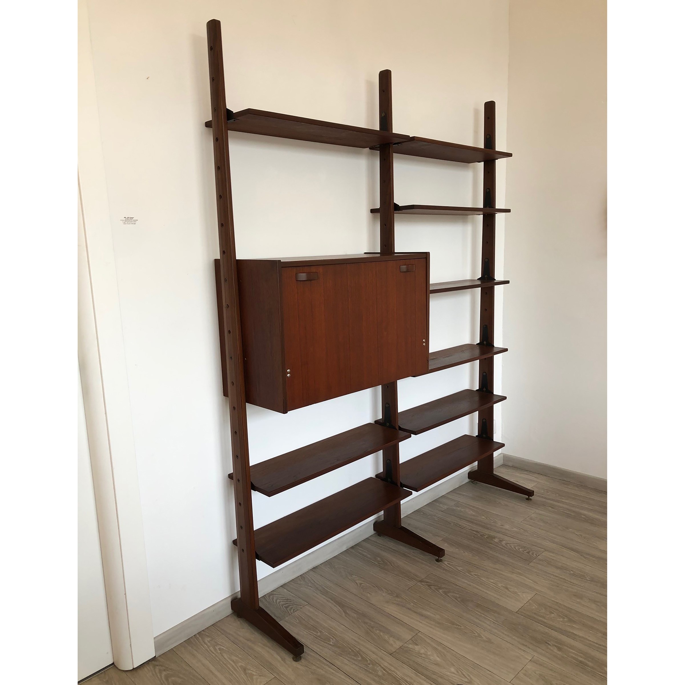 anni 60 libreria modulare in legno, ferro verniciato ed ottone