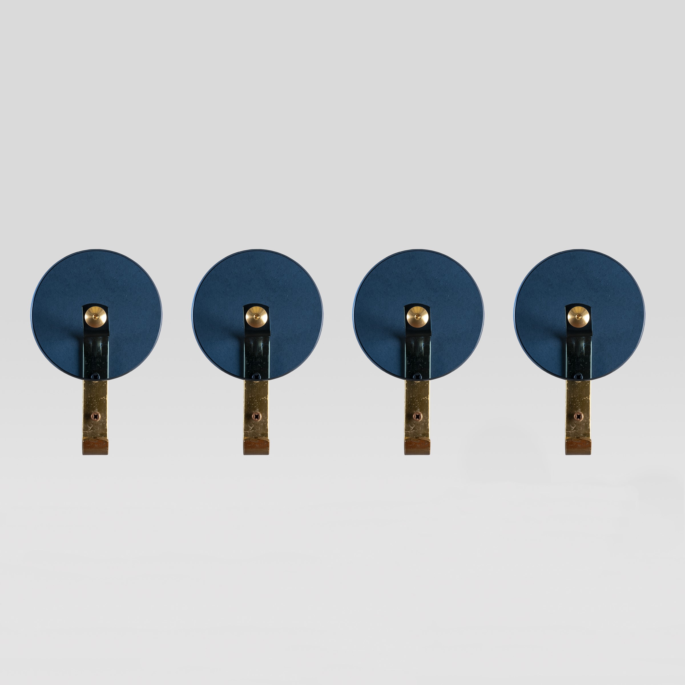 anni 50 set di quattro appendiabiti in vetro azzurro ed ottone