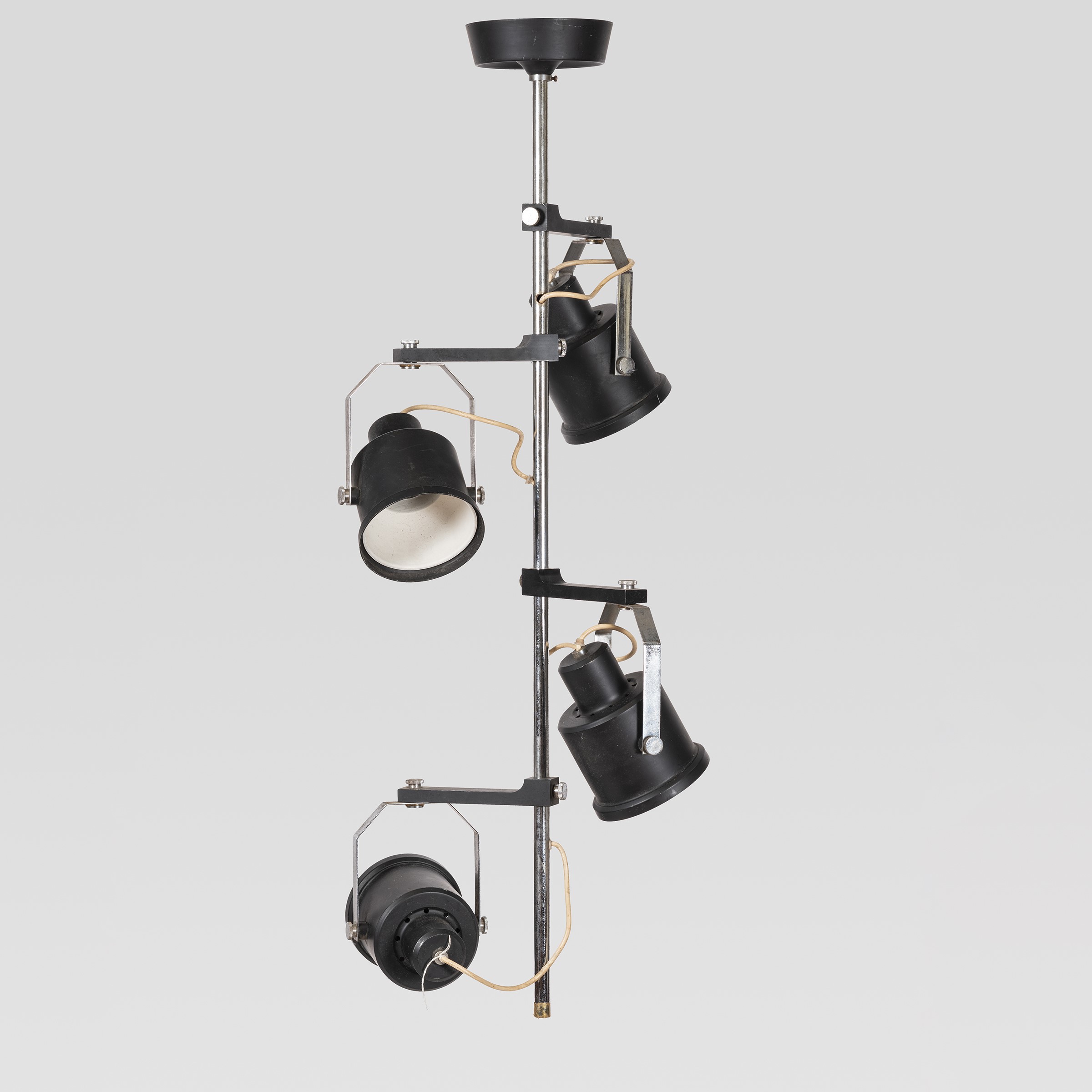 anni 70 lampada a sospensione in acciaio e metallo verniciato