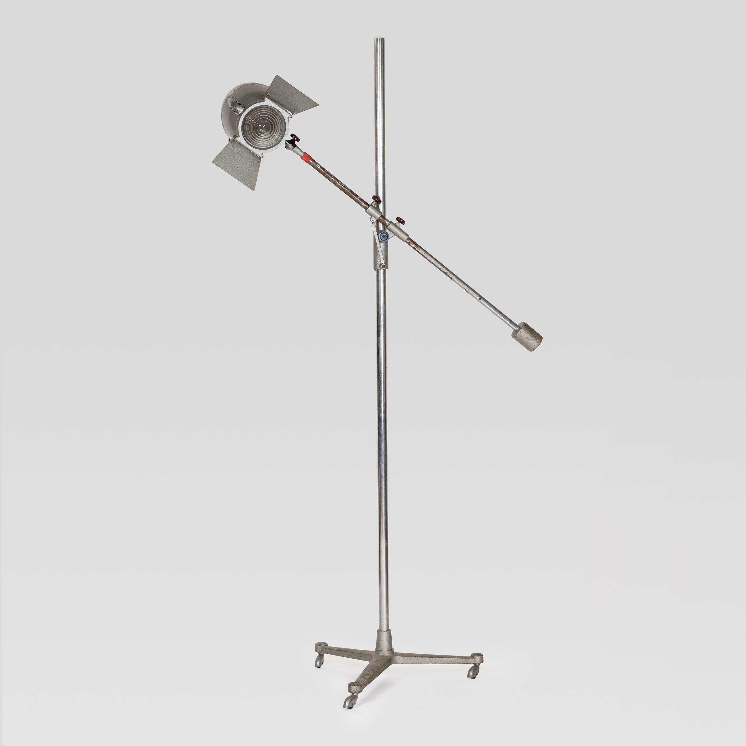 anni 50-60 lampada da terra orientabile per set fotografico in metallo cromato