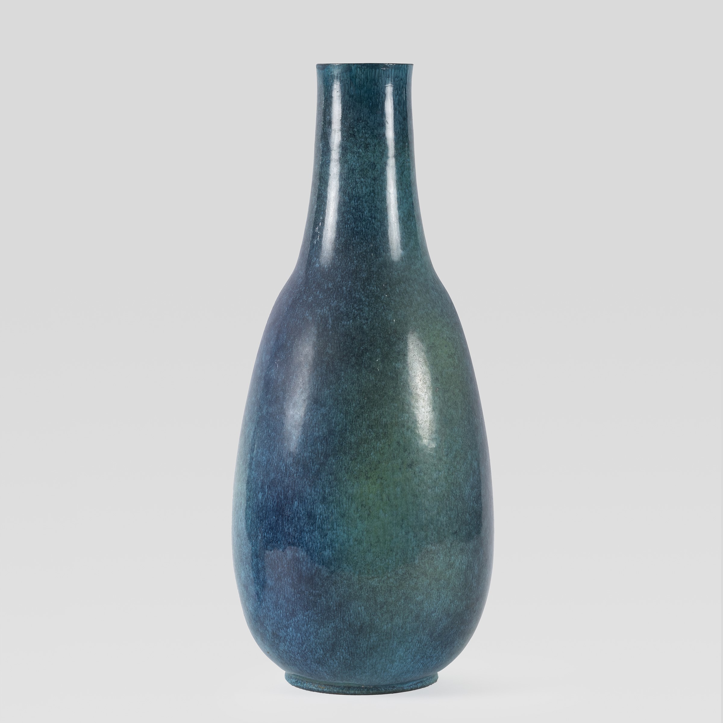 Italia, anni 60 vaso in ceramica smaltata blu e verde, firmato