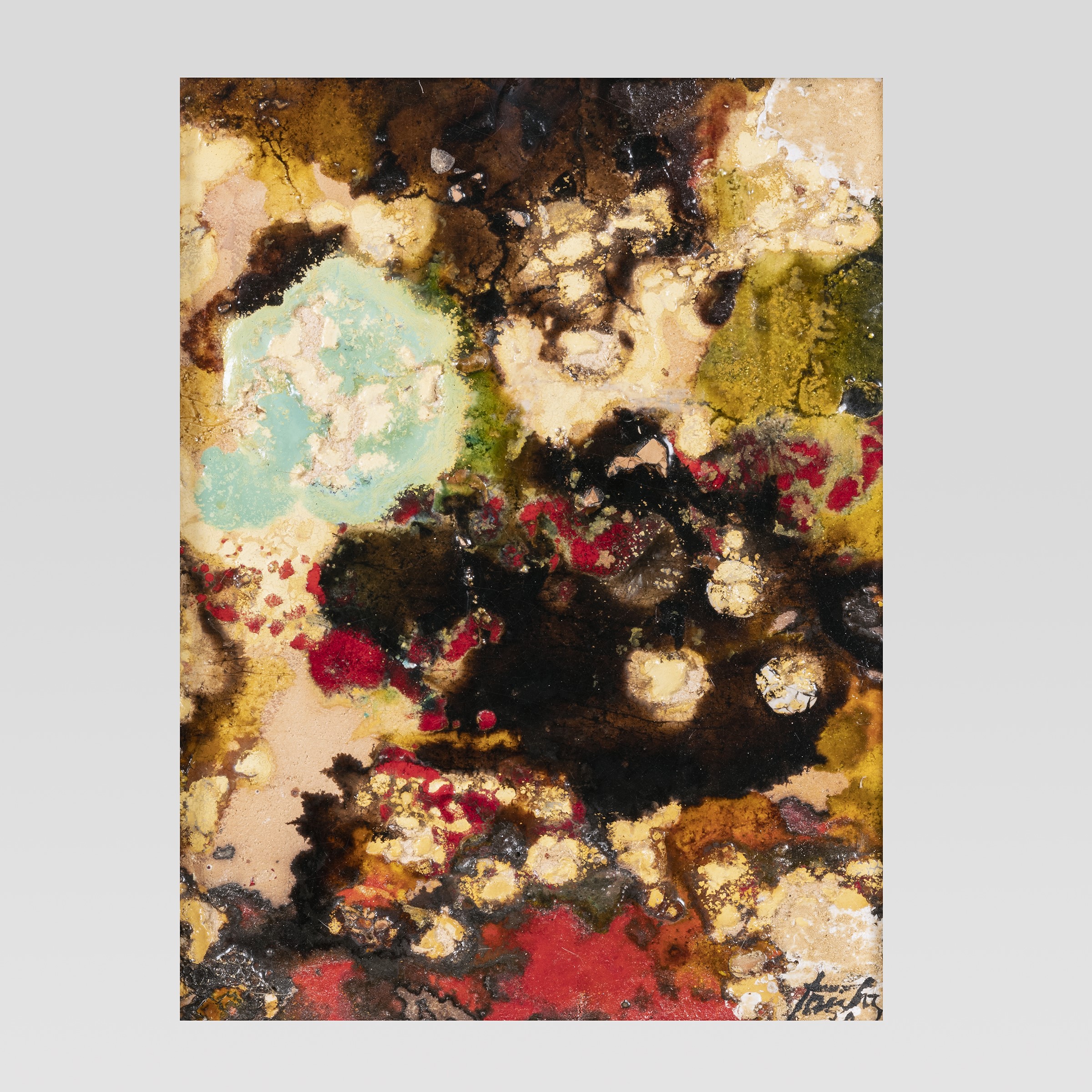 Italia, anni 70 placca in ceramica policroma smaltata, firmata e datata in basso a destra, entro cornice