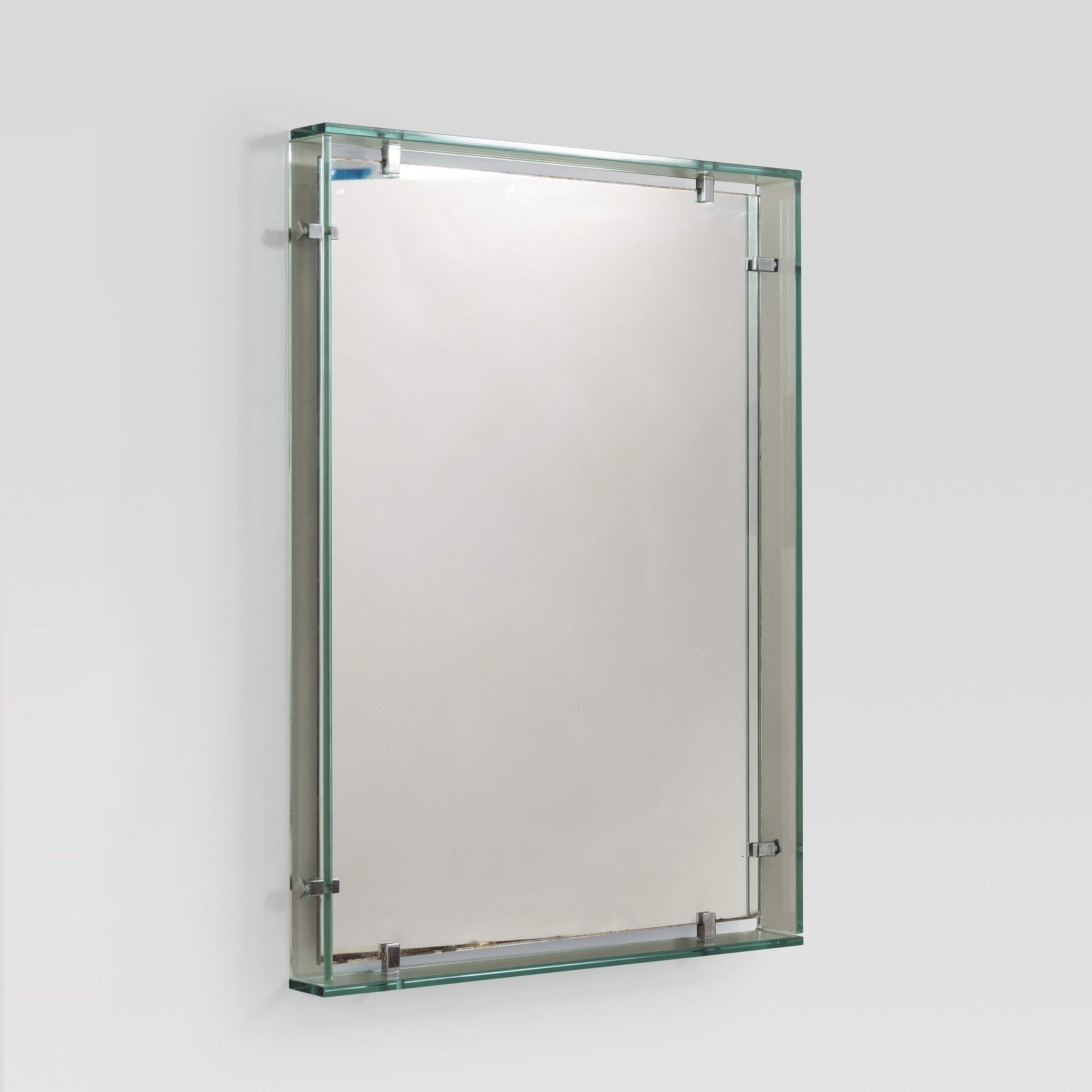 Italia, anni 60 specchio da parete mod. 2014 in cristallo molato, vetro specchiato ed ottone niellato