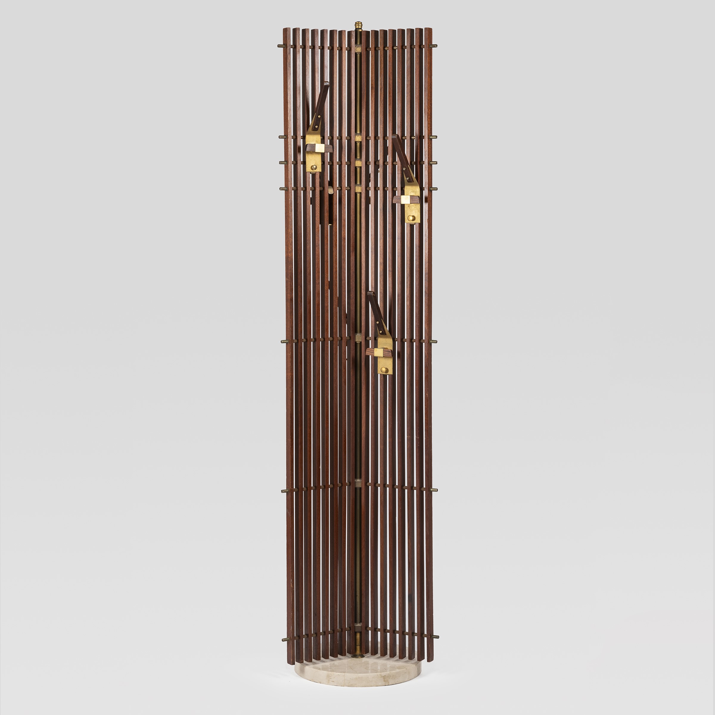 Italia, anni 60 appendiabiti girevole in legno, ottone e marmo