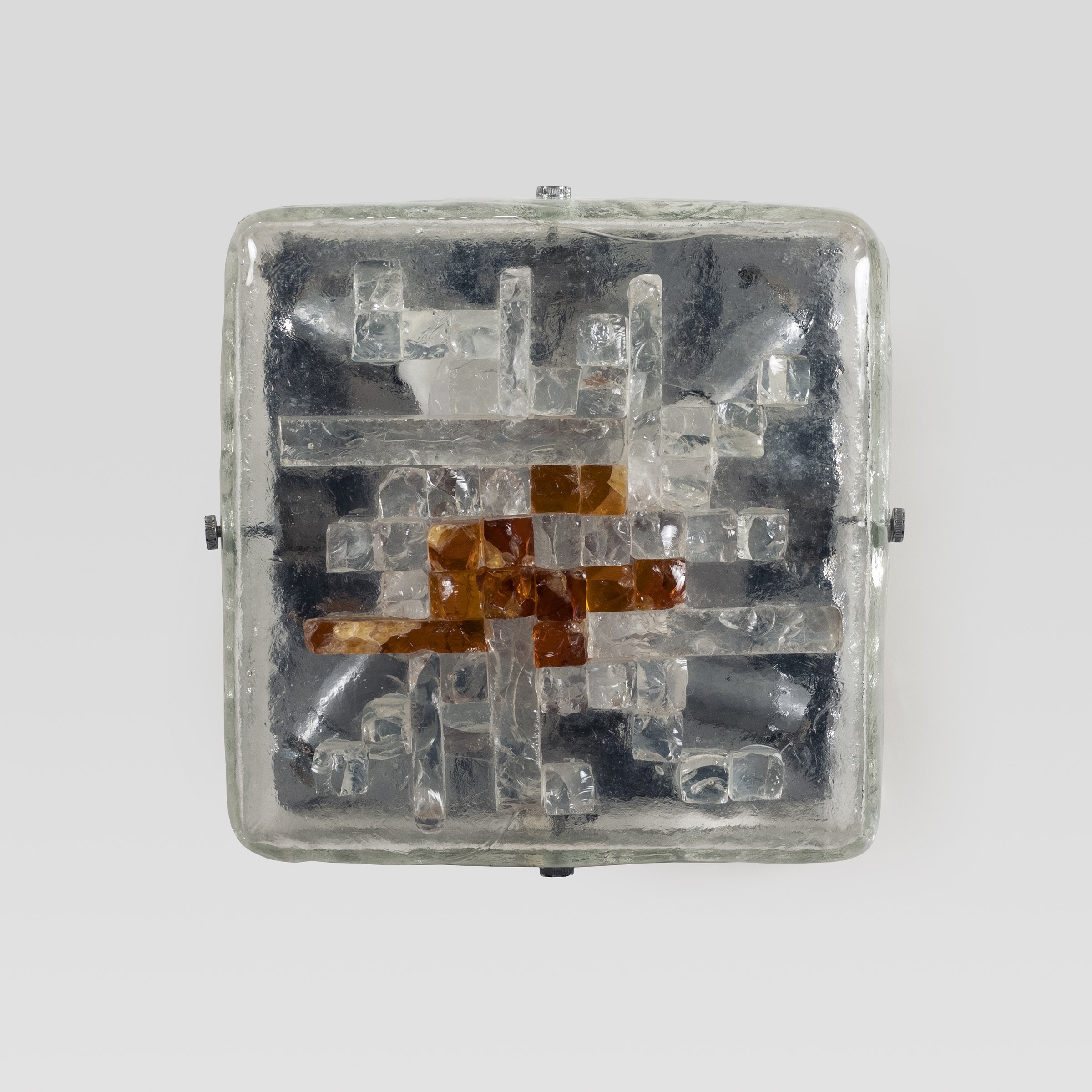 Italia, anni 70 lampada da parete in vetro colorato e acciaio
