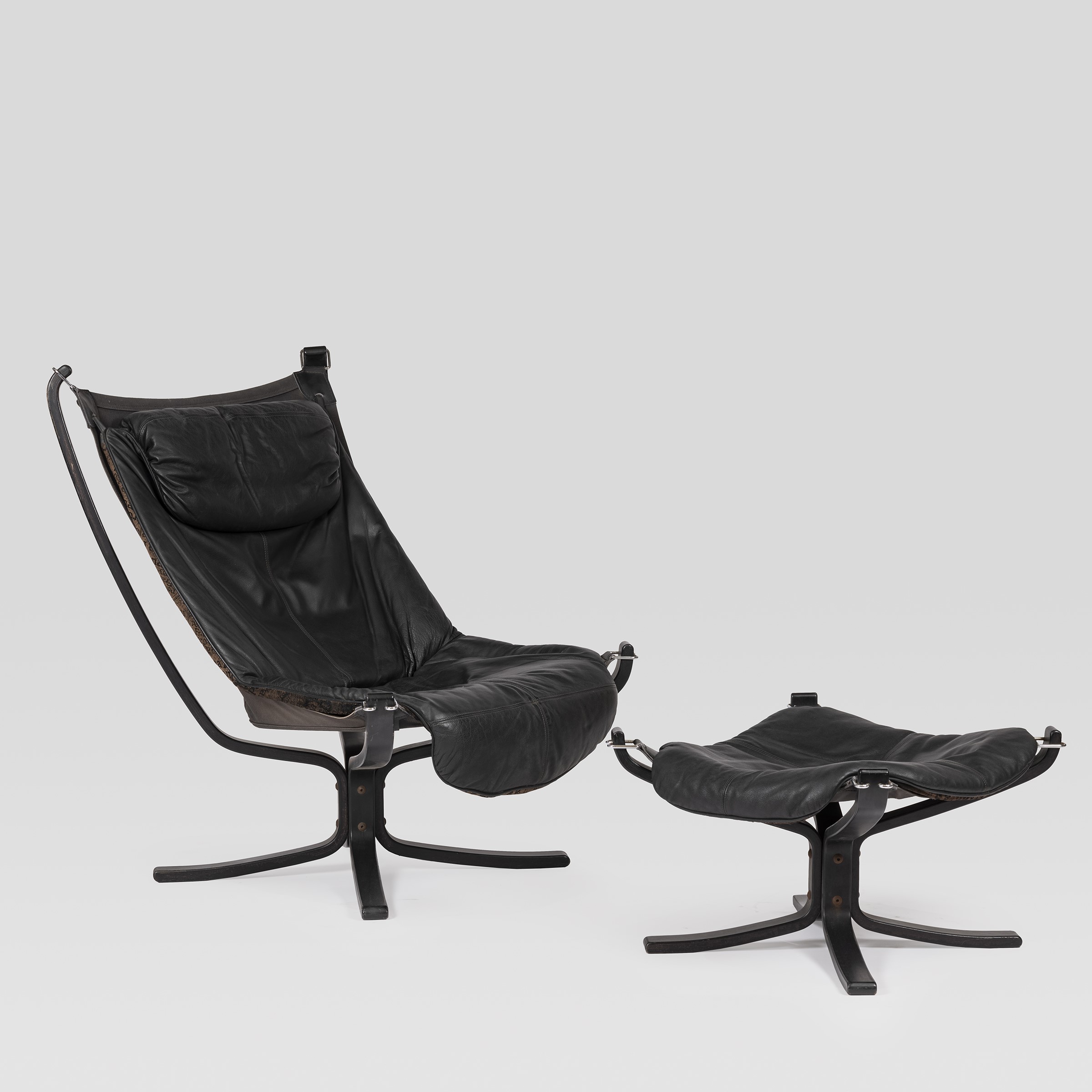 Italia, anni 70 poltrona con poggiapiedi mod. Viking 2, legno curvato e laccato, pelle e metallo cromato, usure