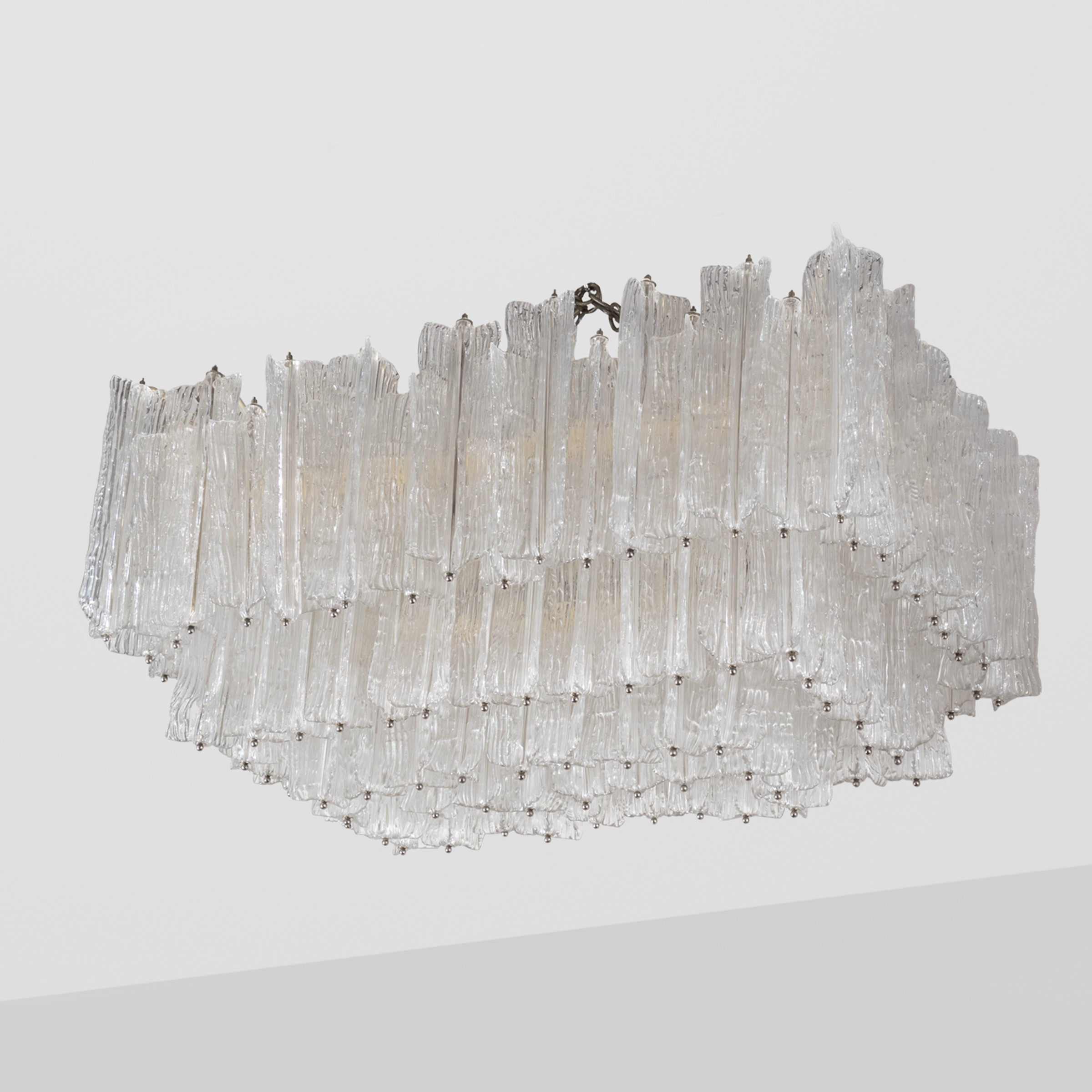 Italia, anni 60 lampada a sospensione in vetro corteccia e metallo verniciato, marchio della produzione