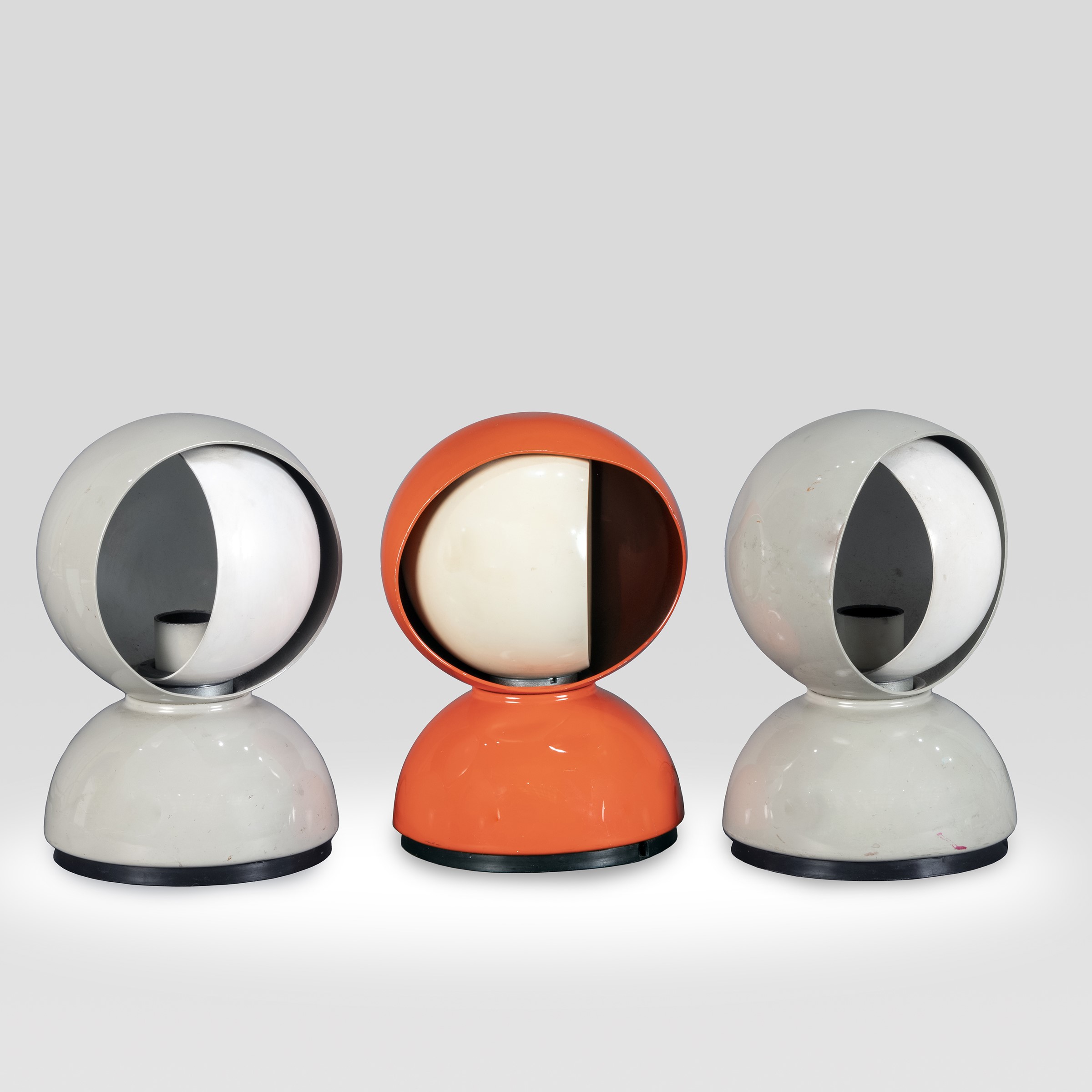 Italia, anni 60 tre lampade da tavolo mod. Eclisse in alluminio laccato, usure e difetti