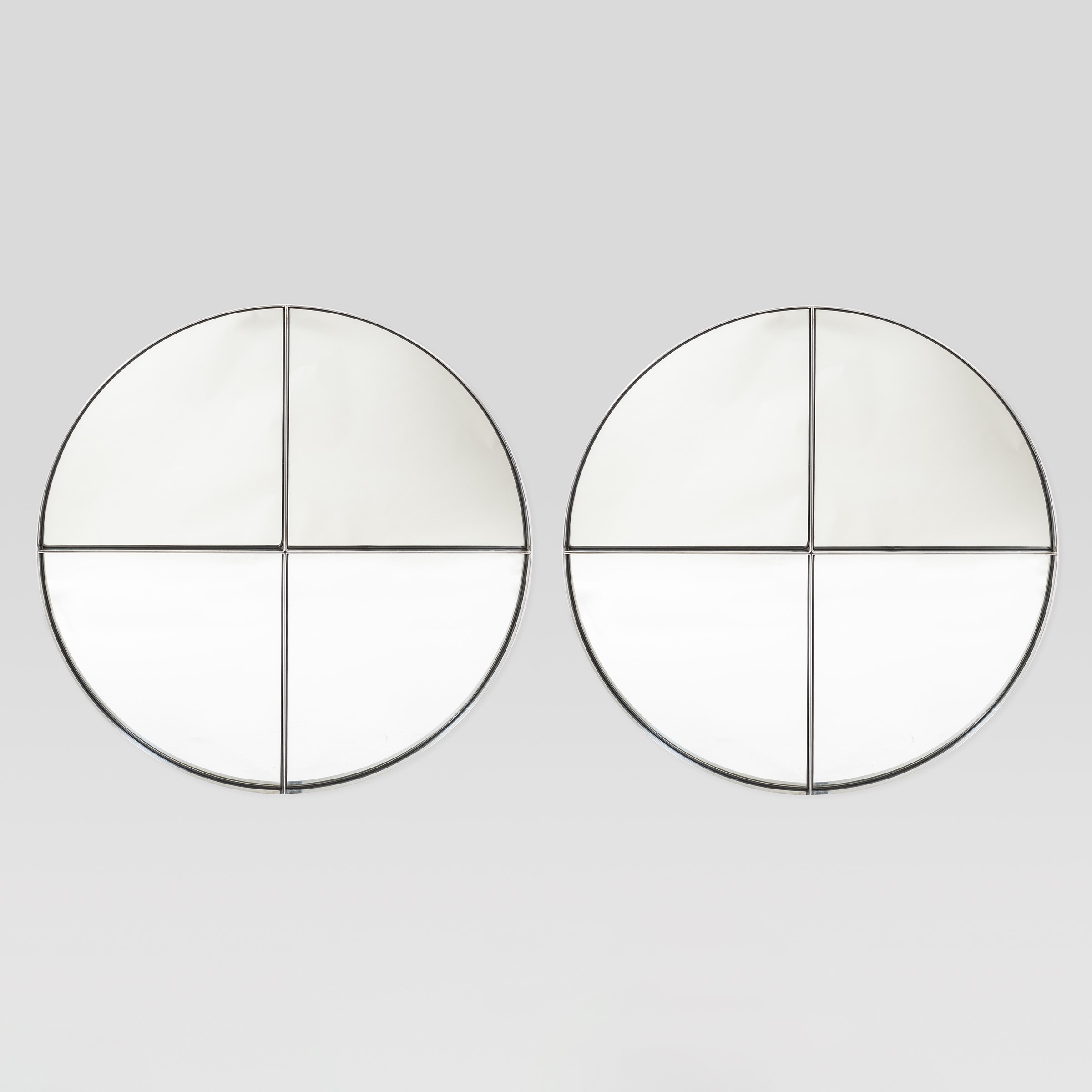 Italia, anni 70 coppia di specchi da parete in acciaio e vetro specchiato