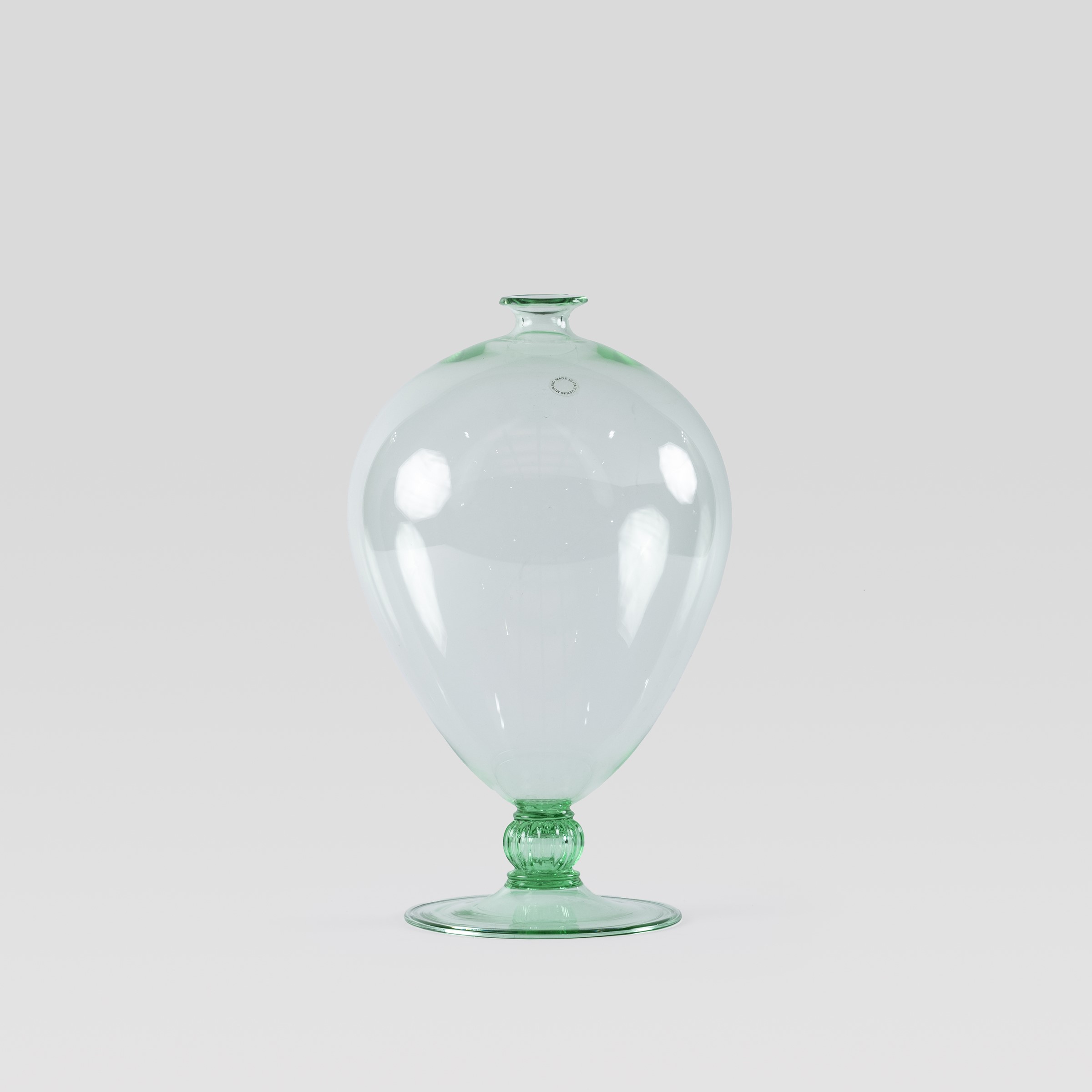 Murano,1996 vaso serie Veronese in vetro soffiato verde acqua, firma a punta Venini 96, etichetta della produzione