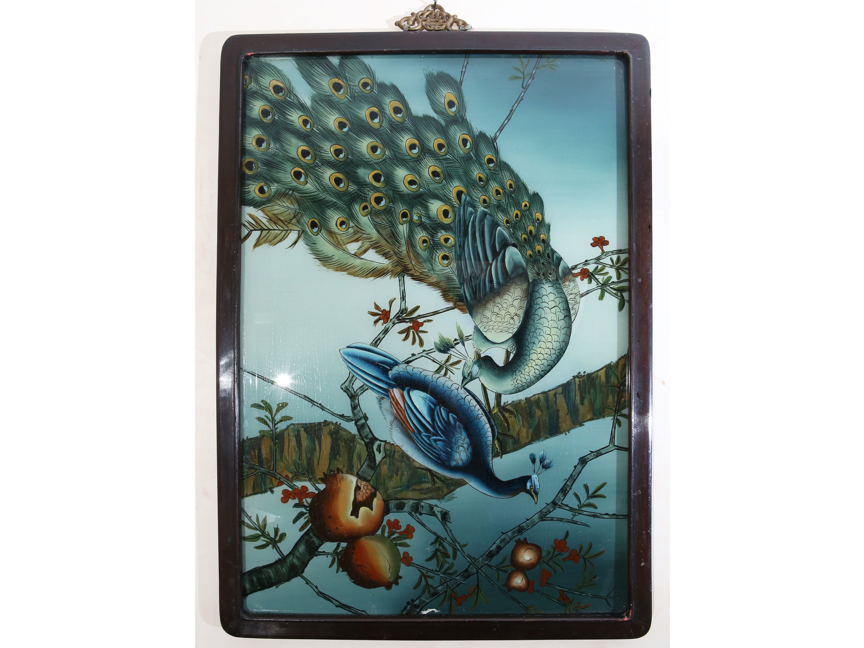 Cina, inizio del XX secolo raffiguranti fiori e volatili, nelle loro cornici originali in legno ebanizzato
