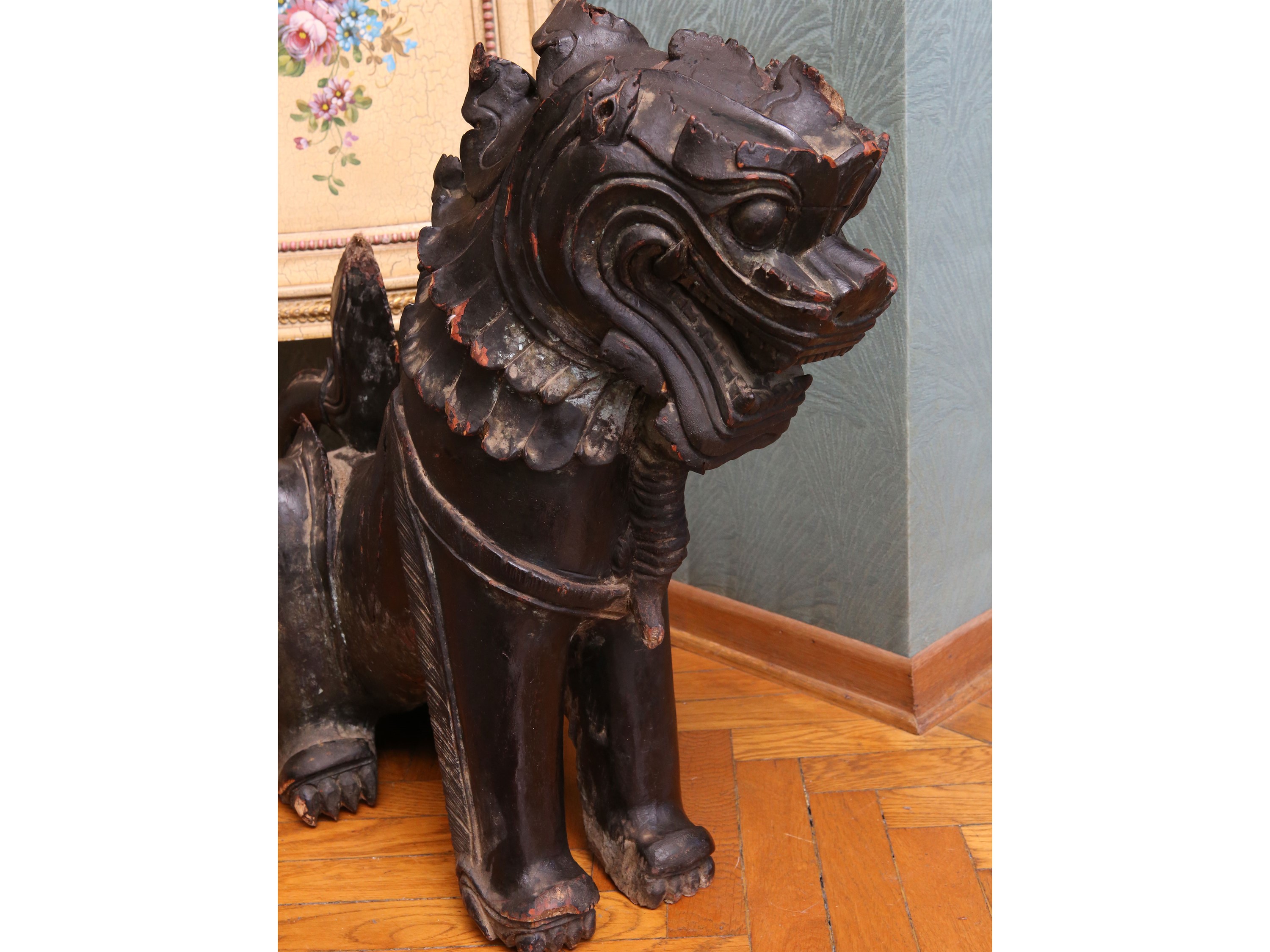 Coppia di sculture in legno raffiguranti Cani di Foo
