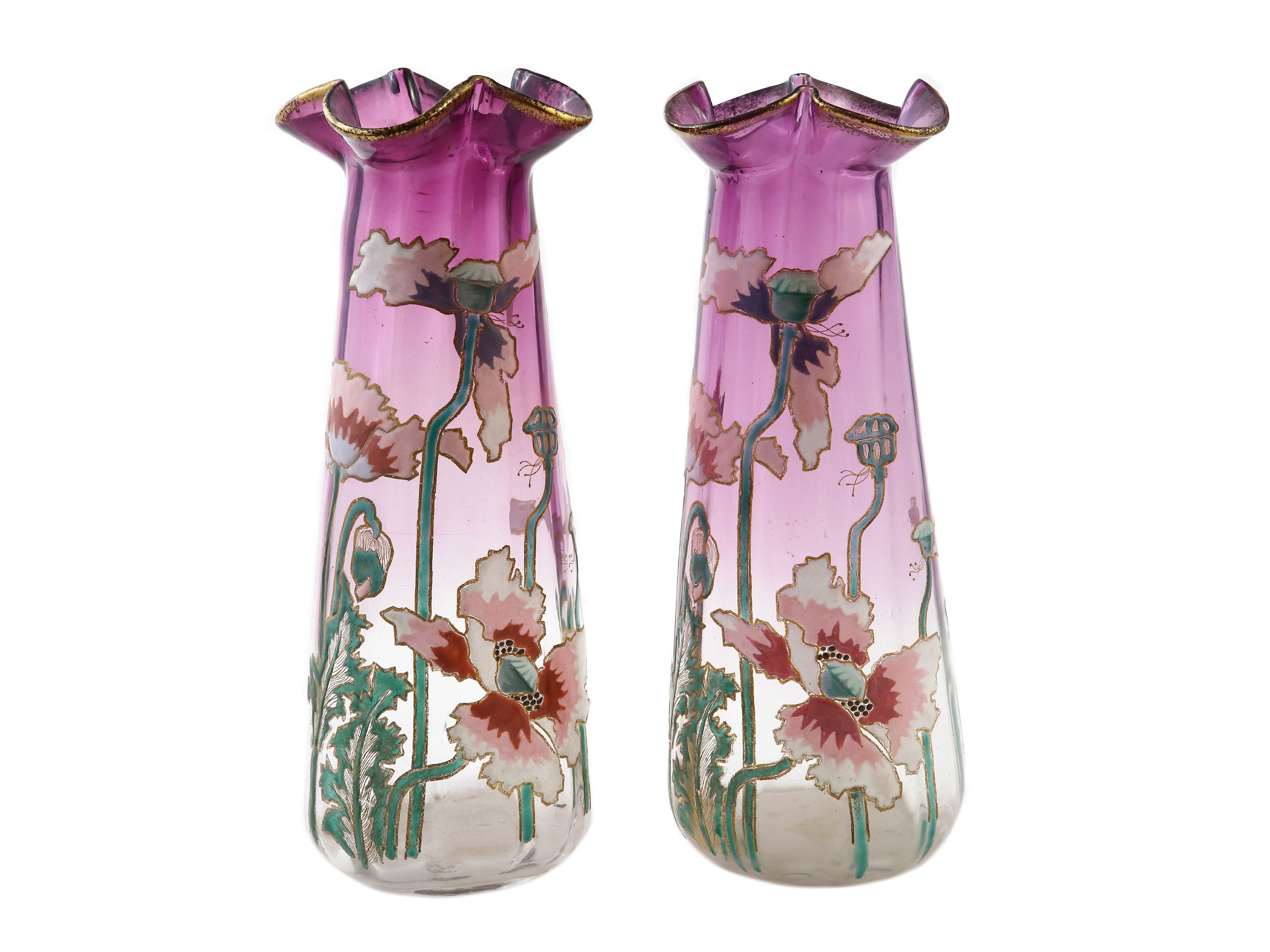 Francia, 1900 con decoro di papaveri dipinti a smalto policromo.
