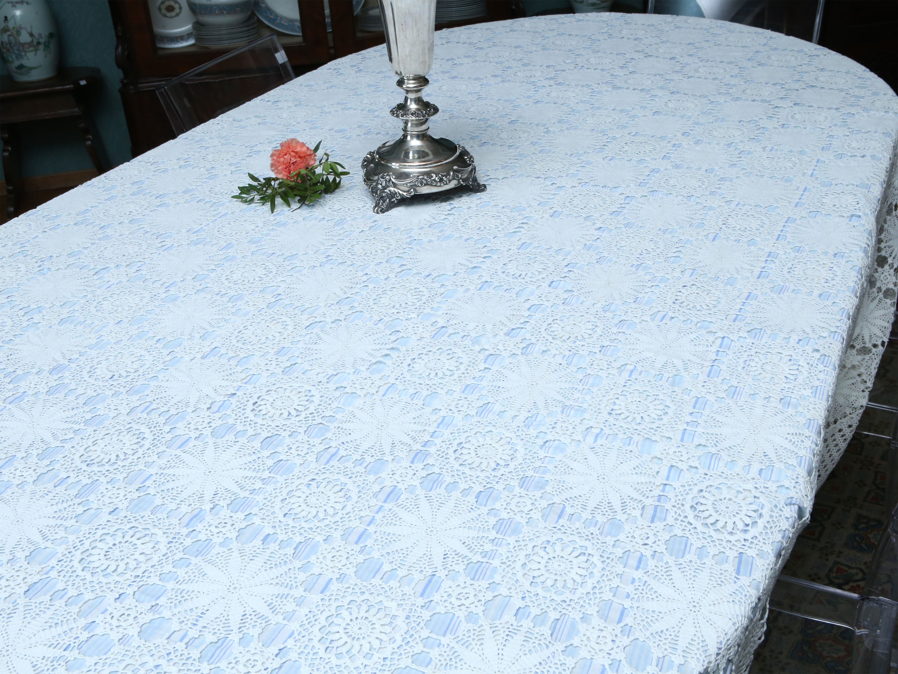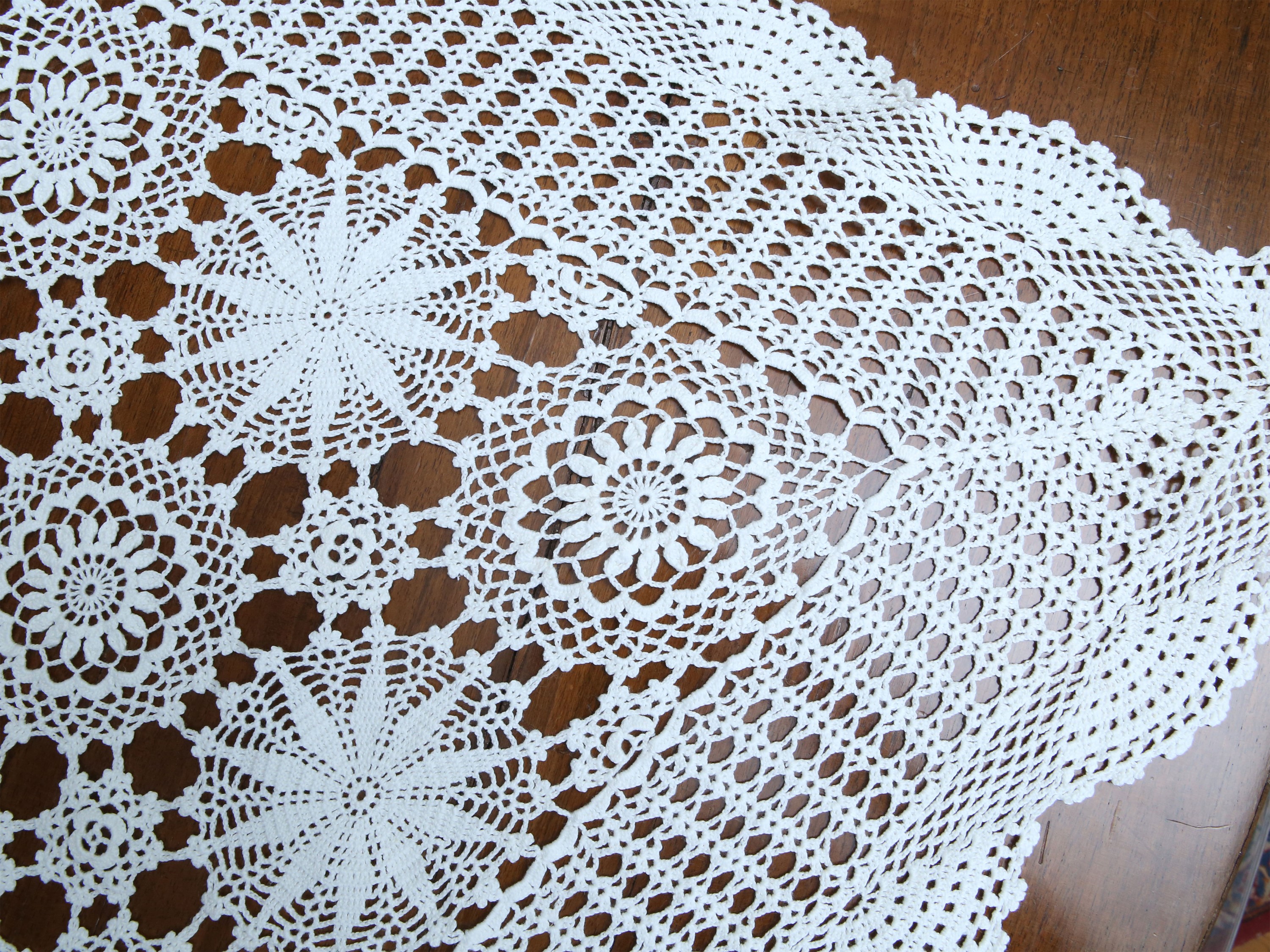 seconda metà del XX secolo una rettangolare in cotone bianco e l'altra tonda color crù, entrambe realizzate a filet con motivo a rete e circolari a traforo, lievi difetti