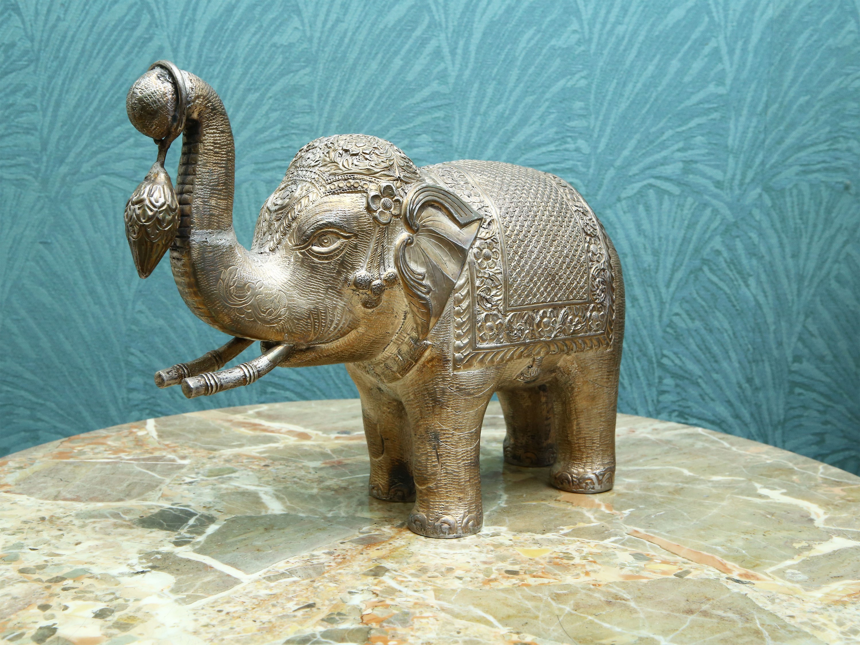 probabilmente India, prima metà del XX secolo raffigurato con proboscide alzata e bardatura da parata