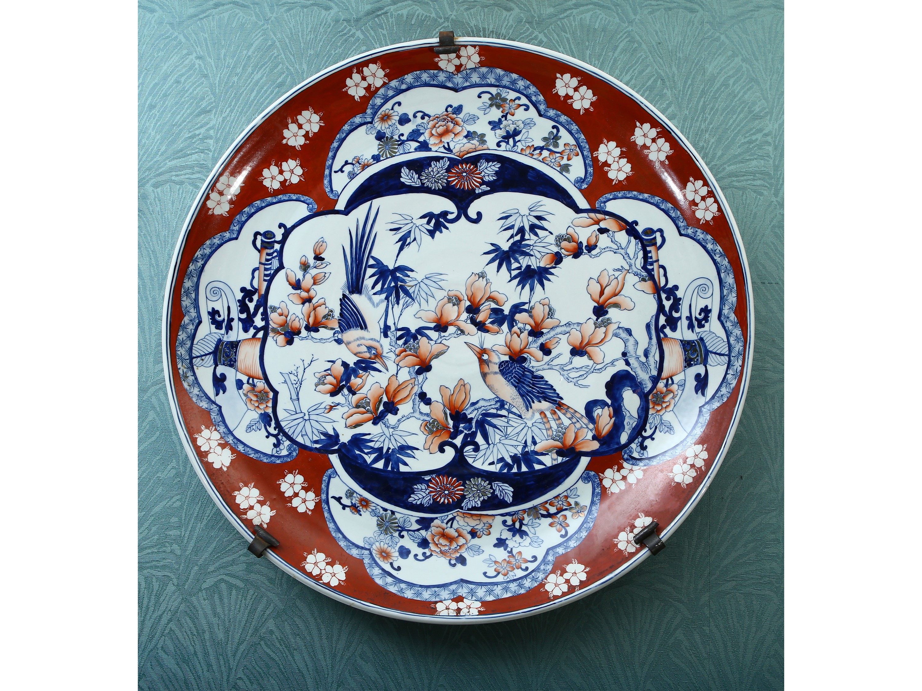 Giappone, inizio del XX secolo dipinto a motivi floreali e uccelli nei toni del blu e del rosso