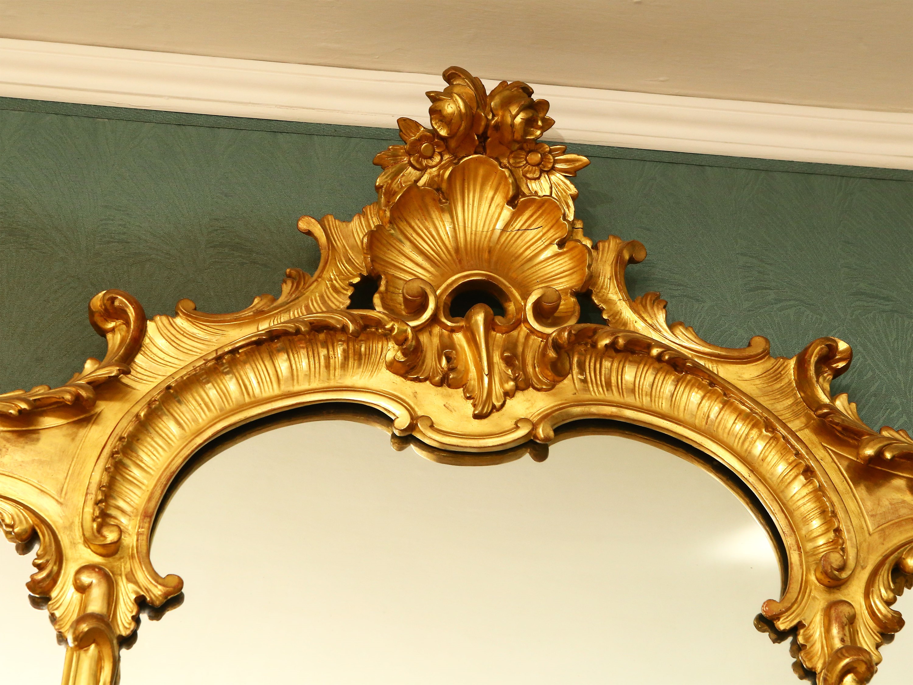 Toscana, metà del XIX secolo tripartita, cimasa trilobata, intagliata con trionfo di volute e foglie d'acanto centrate da motivo a conchiglia con tralci che ricadono ai lati