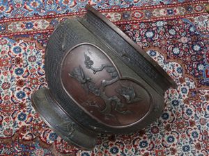 h cm 35, diam cm 43 Cina, inizio del XX secolo sbalzato con figure di volatili