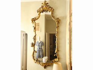 Specchiera con cornice in legno intagliato e dorato a mecca