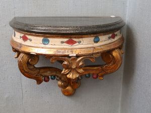 h cm ... XX secolo piano a mezzaluna apribile, dipinto ad imitazione del marmo a celare vano porta oggetti, due [..]