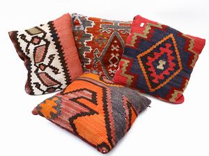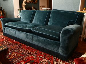 h cm 72x134x62, tende cm 310x150 circa (3) Anni Settanta ed un paio di tende in tessuto turchese