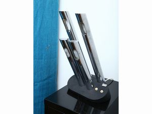 h cm 40 Anni Settanta realizzato come quattro canne in metallo cromato su base inclinata in metallo patinato, [..]