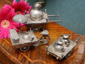 gr 430 (3) Cina composto da tre carrettini portavivande incisi a volute
