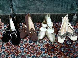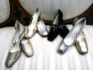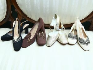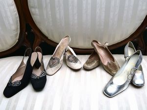 Lotto di scarpe vintage in pelle, tessuto e velluto