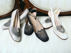 n. 37 (4) vestibilitą ridotta Anni Sessanta firmate Rose Mary, ricamate e ornate da marabł, difetti