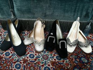 Lotto di scarpe vintage in pelle, velluto e tessuto