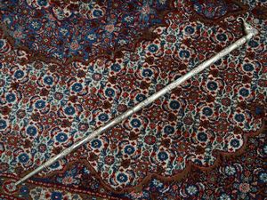 gr 785, lungh cm 100 India desinente a testa di elefante, diviso in tre sezioni cave, sbalzato con tralci vegetali [..]