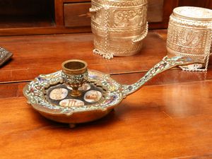 lungh cm 21 inizio del XX secolo realizzata come una piccola palmatoria impreziosita da placca recante quattro [..]