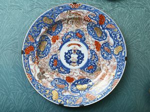 diam cm 51 Cina, fine del XIX secolo dipinto con motivi floreali nei toni del rosso e del blu con lumeggiature [..]