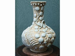 h cm 29 Cina, fine del XIX secolo a forma di bulbo, decorato ad altorilievo con figura entro paesaggio su fondo [..]