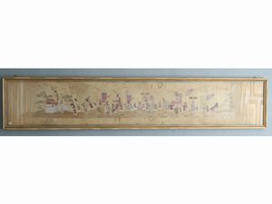 cm .... Cina, fine del XIX/inizio del XX secolo raffigurante un corteggio ricamato nei toni del bianco, beige [..]