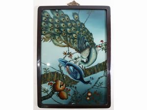 cm 70x49 Cina, inizio del XX secolo raffiguranti fiori e volatili, nelle loro cornici originali in legno eban [..]