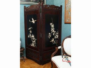 ciascuna anta cm 195x79 Cina, inizio del XX secolo realizzato a due ante con cornici e cimase intagliate e traforate [..]