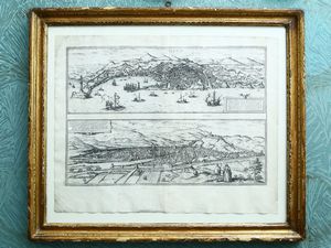 foglio cm 48x60 incisione postuma con acquarellatura, in cornice