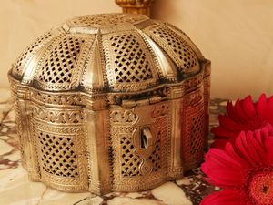 gr 950, h cm 10x16x10 probabilmente India, XX secolo di forma rettangolare, interamente realizzato a filigrana [..]