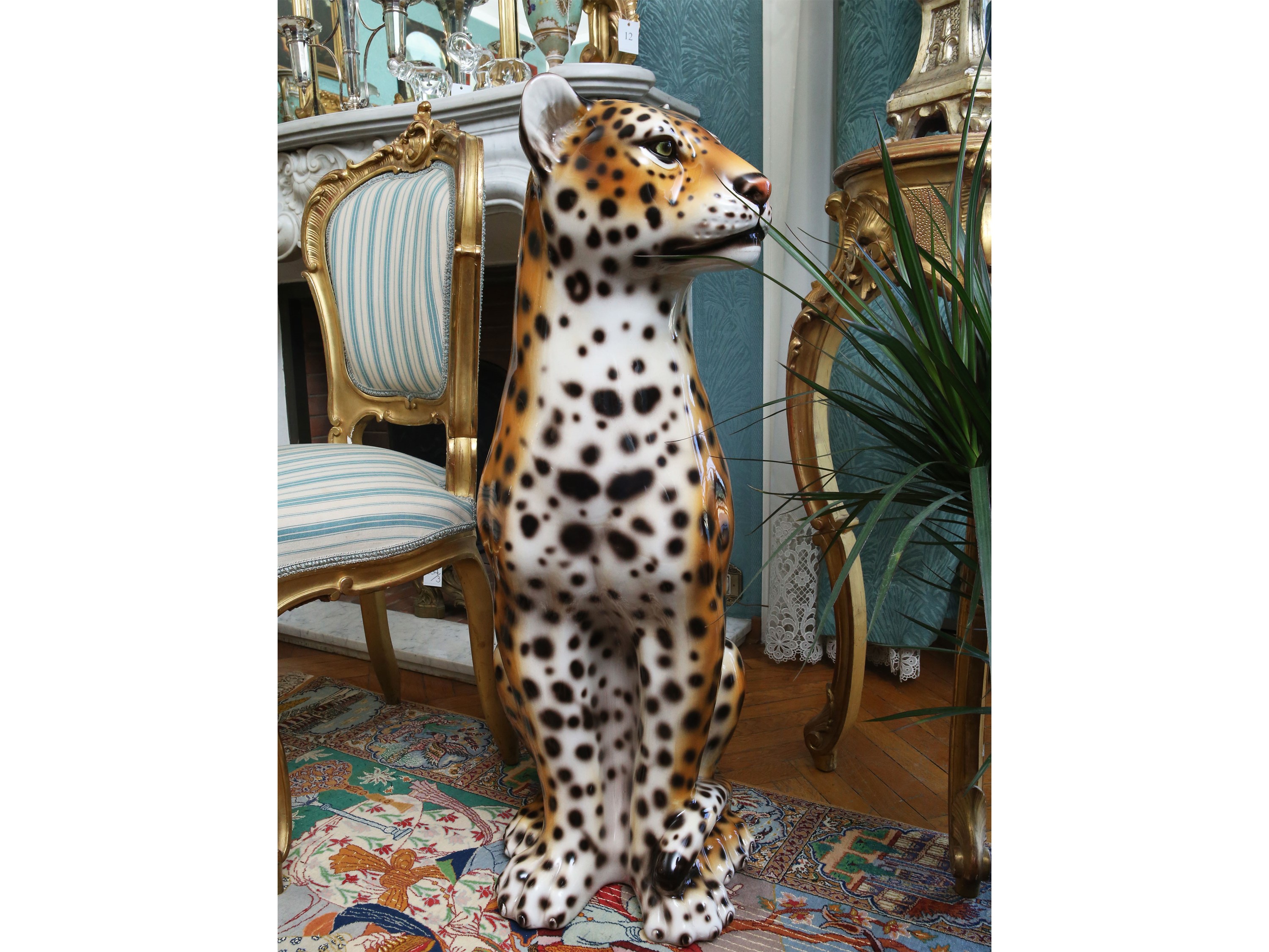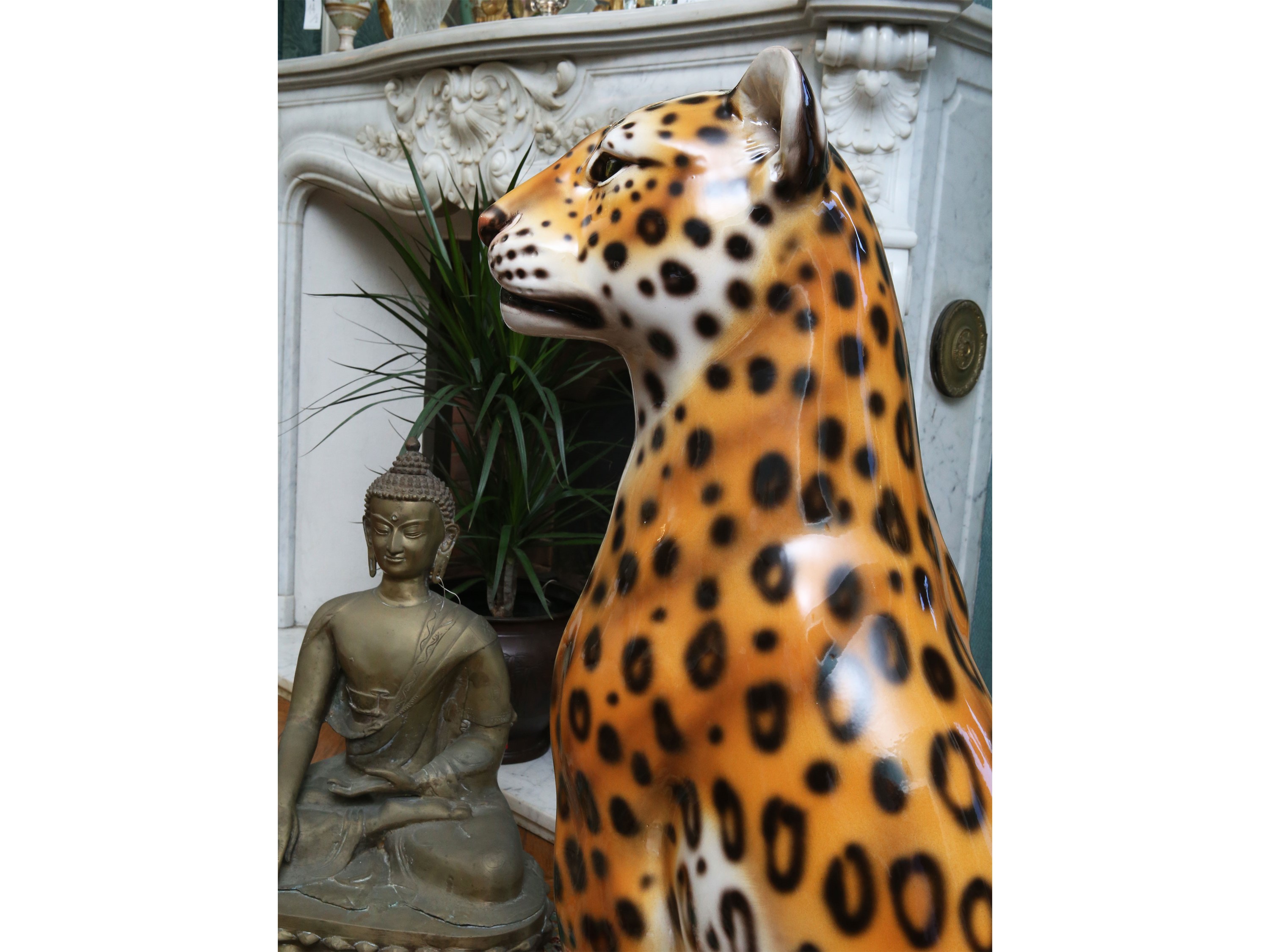 Leopardo a grandezza naturale in terraglia policroma di Bassano