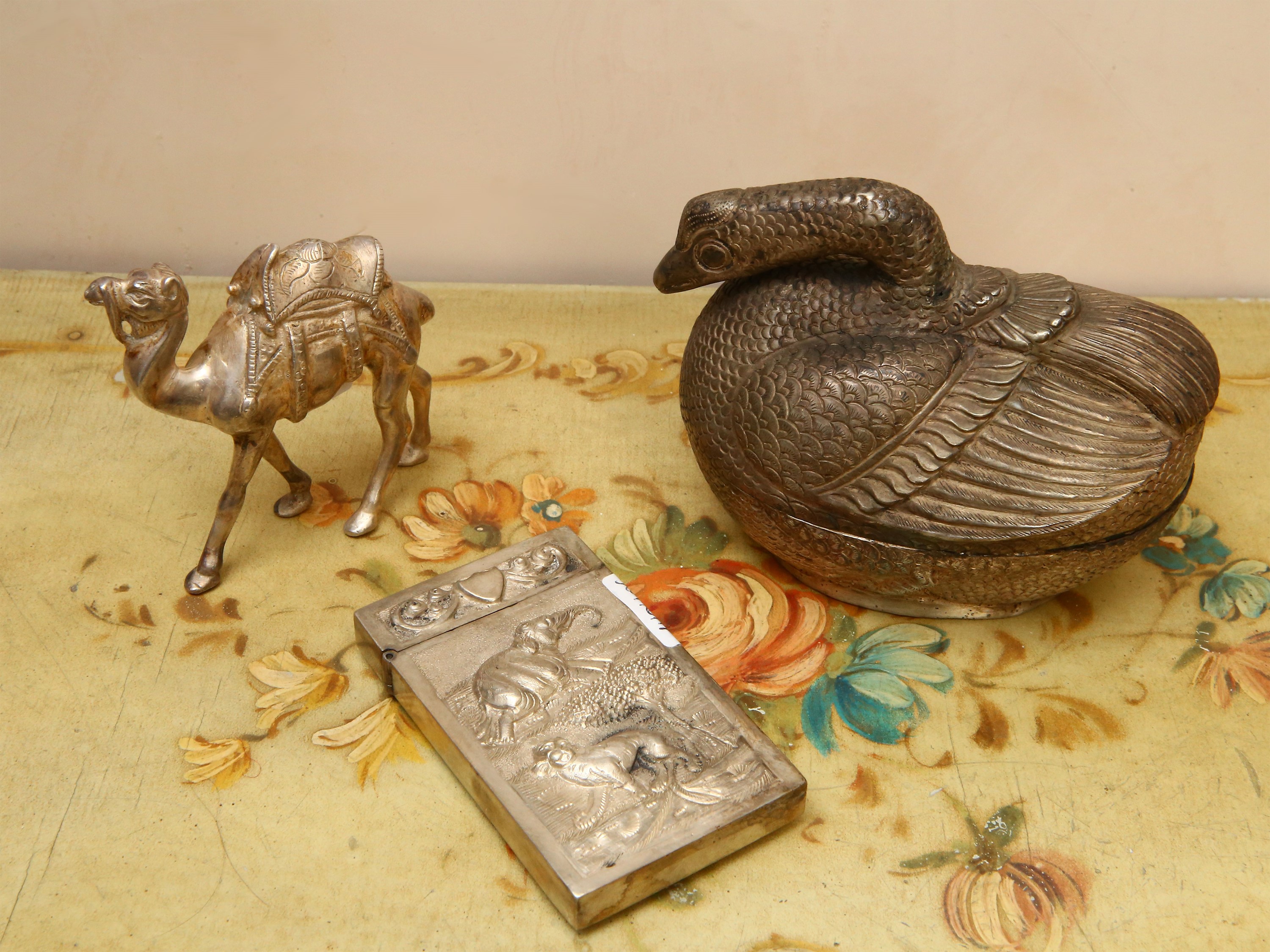 Asia, XX secolo composto da una scatola a foggia di cigno, un astuccio istoriato con elefanti ed altri animali selvatici ed un piccolo cammello