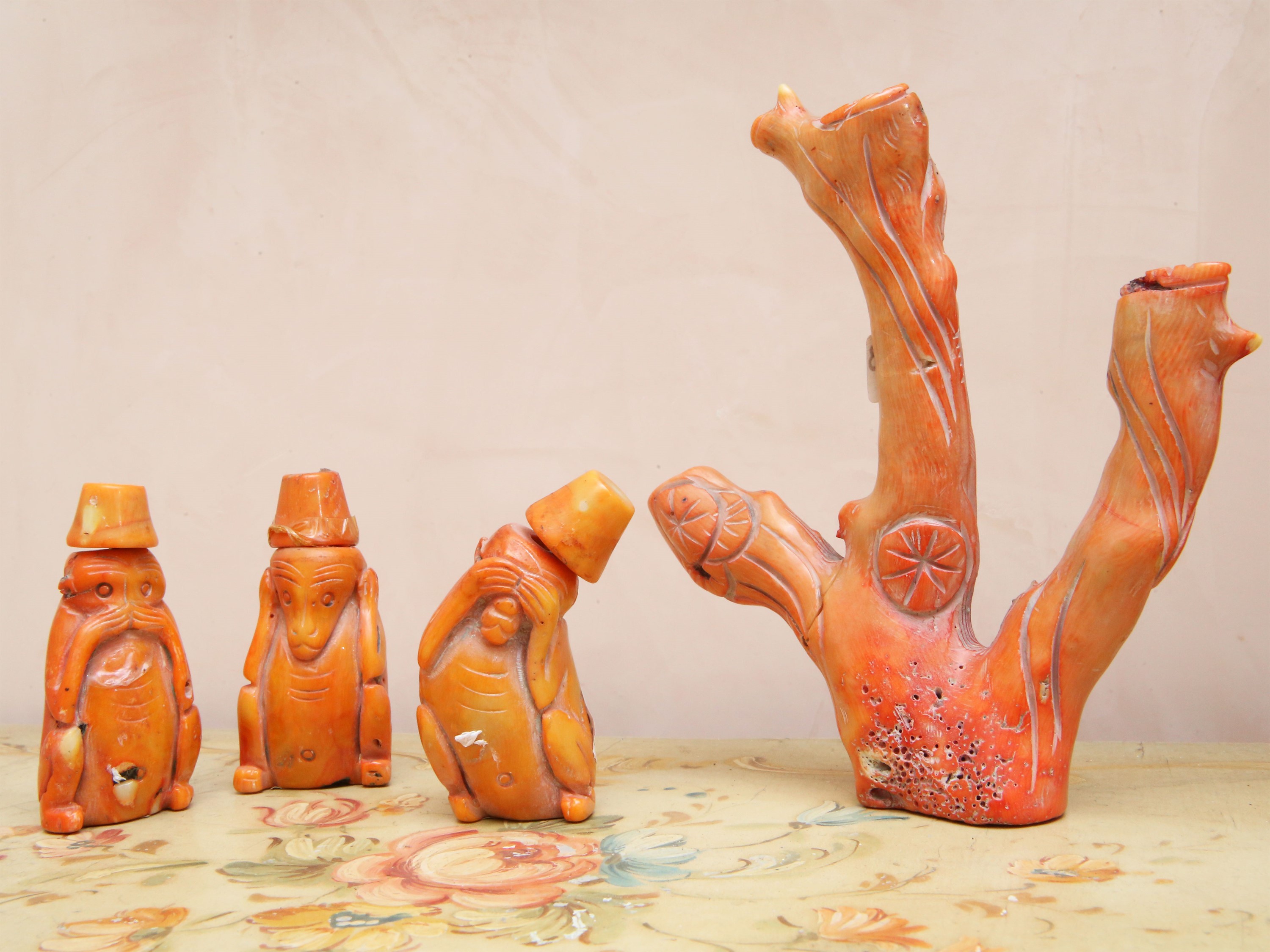 Lotto di curiosità in corallo bamboo