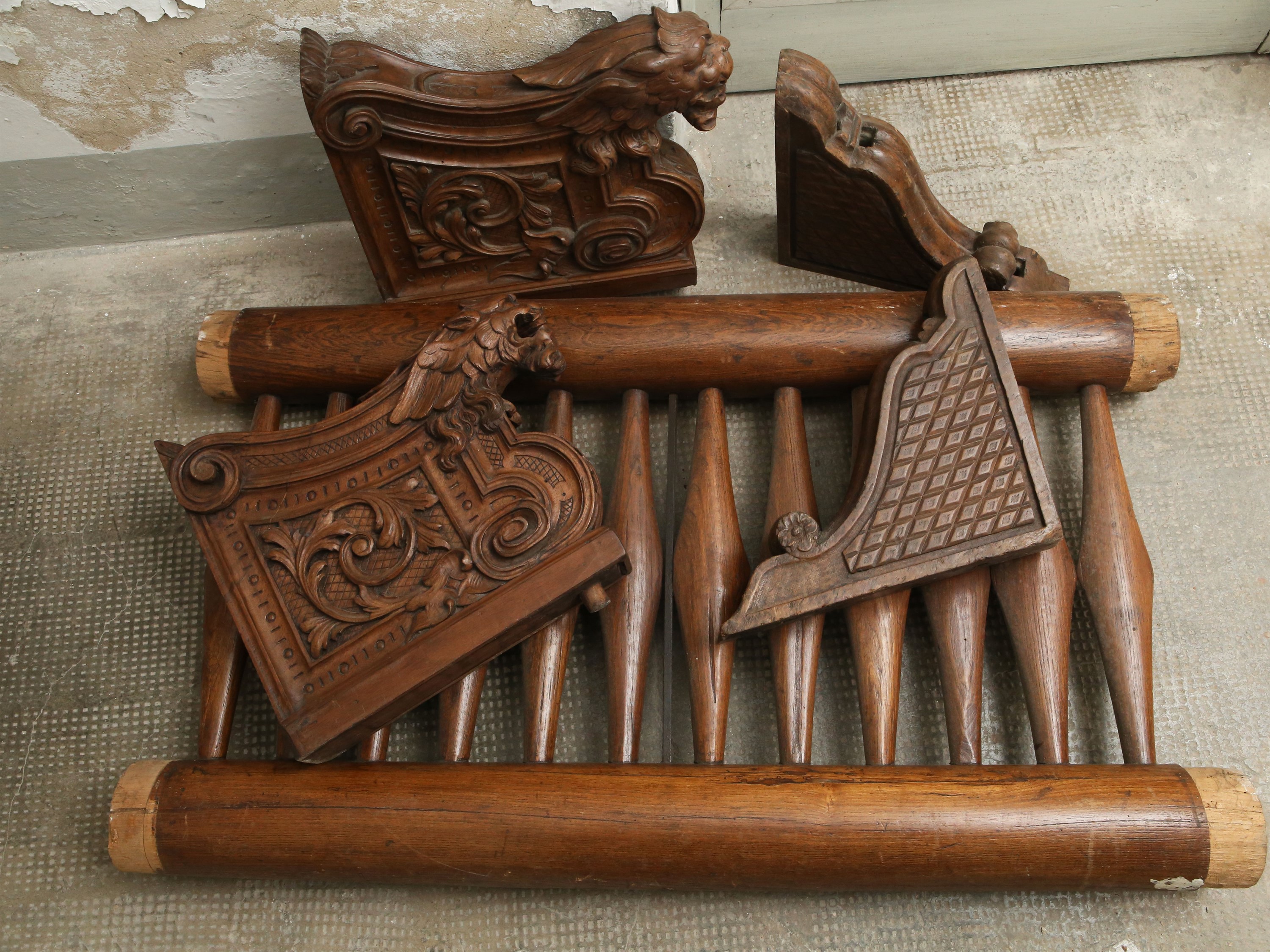 alcuni dell'inizio del XX secolo composto da coppia di mensoloni a grottesca, una coppia a voluta ed una ringhiera in rovere, difetti