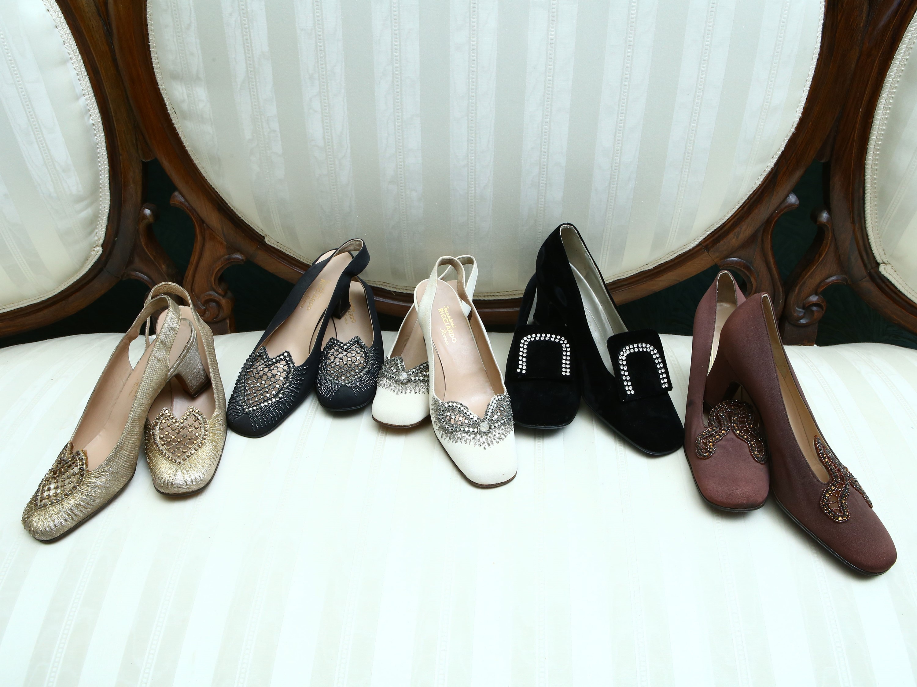 Lotto di scarpe vintage in pelle, tessuto e velluto