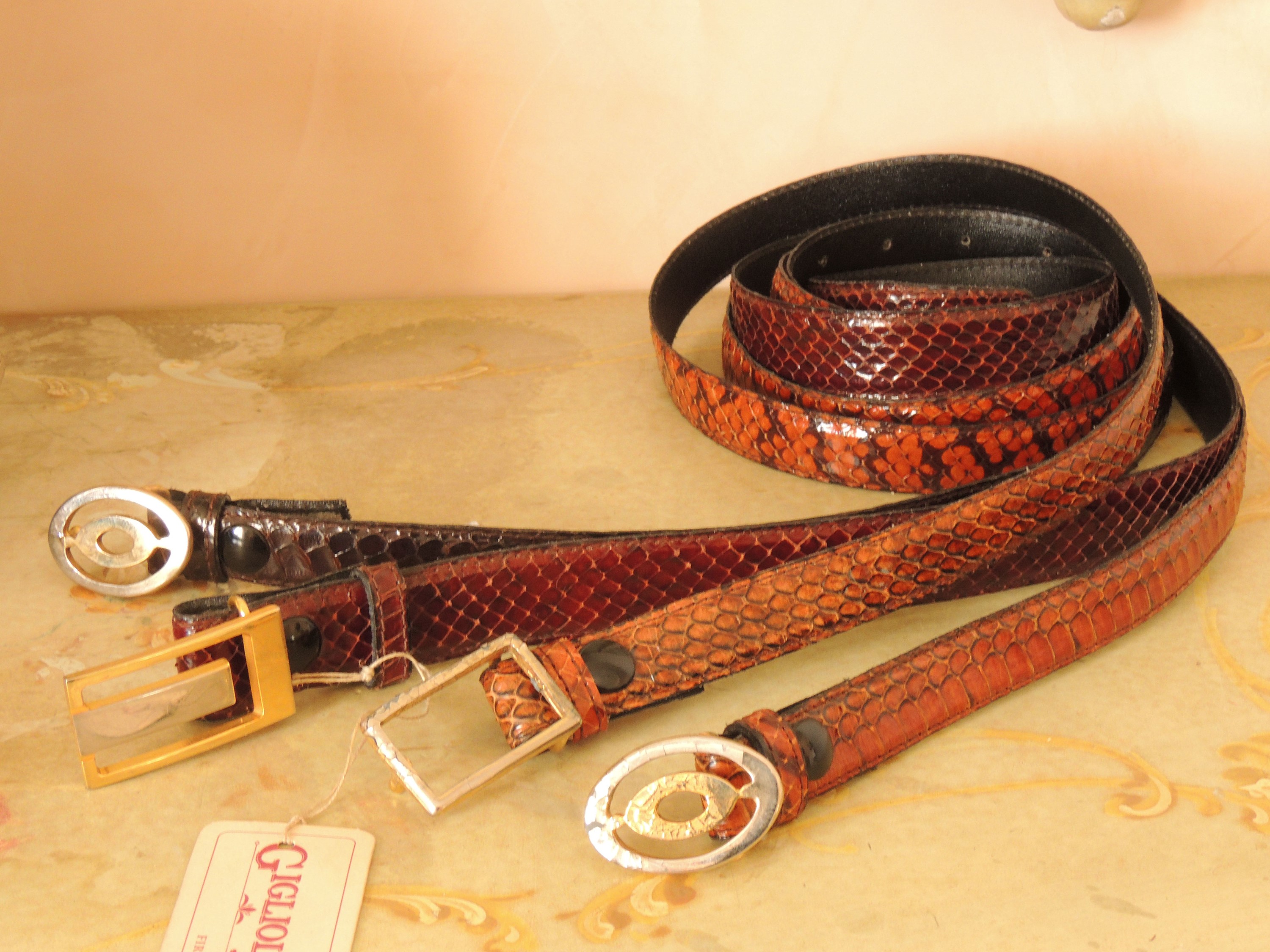 Quattro cinture in pitone marrone